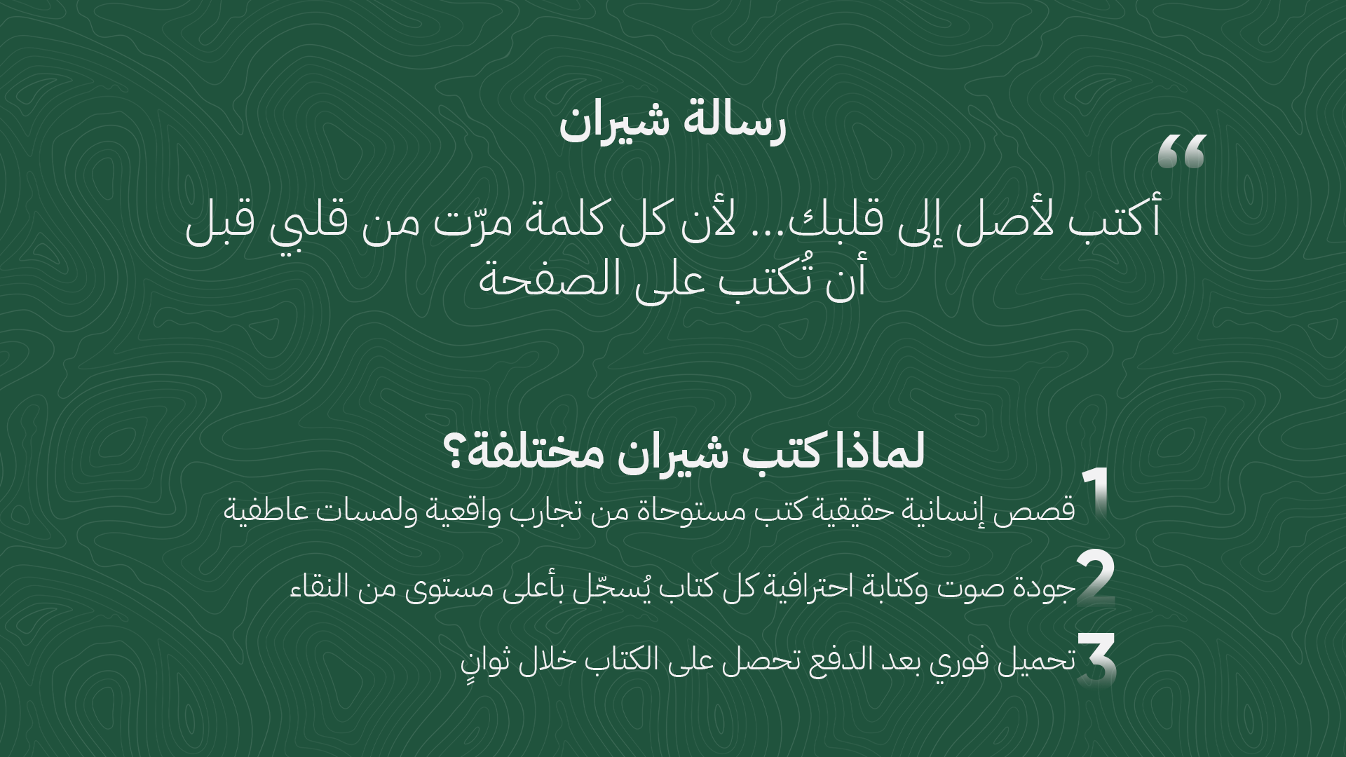أشكر الكاتب على شجاعته وصدقه في سرد حكاية حياته، فقد كانت قصة ملهمة ومليئة بالعبر. • شكرًا لك لأنك شاركتنا رحلتك وتجربتك بكل هذا العمق والإنسانية يا أستاذ شيران🤍